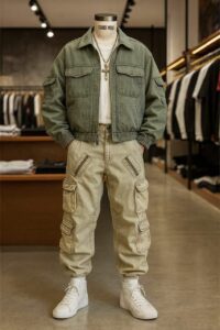 - Cargo trousers and utility jackets